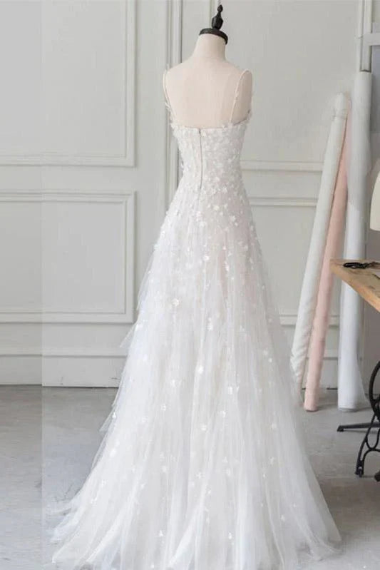 Regular price $429.99 USDRegular priceUnit price / per$509.99 USDSale price $429.99 USDSaleSpaghetti Straps Lace Tulle Floor Length Beads Prom Dress Wedding Dress With Flowers