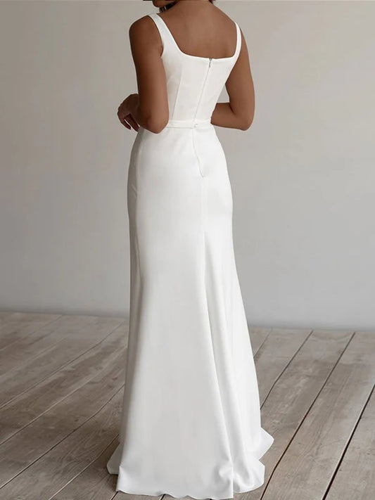 Regular price $189.99 USDRegular priceUnit price / per$269.99 USDSale price $189.99 USDSaleTight fit/straight tube crepe ruffle edge shoulder strap sleeveless ground wedding dress Floor Length