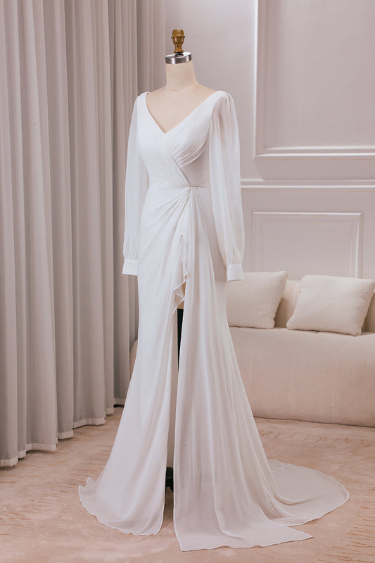 Regular price $158.99 USDRegular priceUnit price / per$238.99 USDSale price $158.99 USDSaleIvory A-Line V-Neck Long Sleeves Chiffon Wedding Dress With Slit Sexy