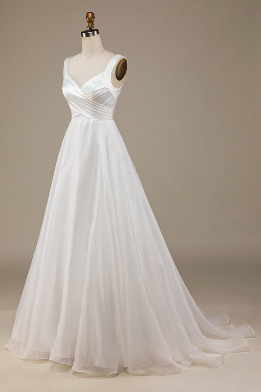 Regular price $145.99 USDRegular priceUnit price / per$225.99 USDSale price $145.99 USDSaleIvory Spaghetti Straps V-Neck Sweep Train Wedding Dress With Slit Sexy