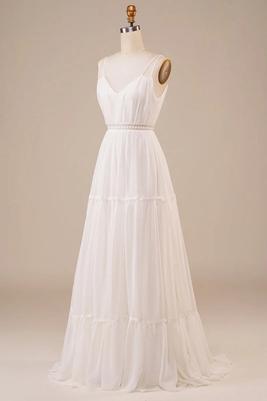 Regular price $189.99 USDRegular priceUnit price / per$269.99 USDSale price $189.99 USDSaleTiered Spaghetti Straps Lace Bridal Dress Off Shoulder