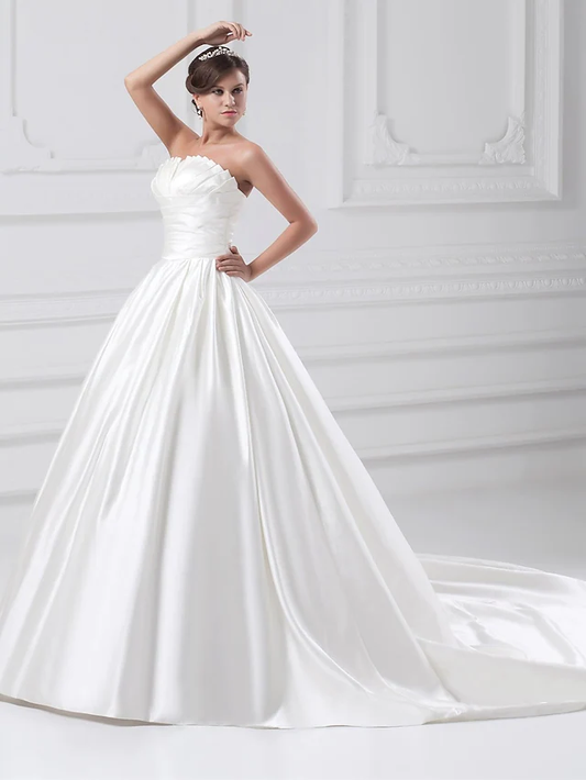 Regular price $189.99 USDRegular priceUnit price / per$269.99 USDSale price $189.99 USDSalePrincess A-Line Long Wedding Dresses Strapless Chapel Train Satin Sleeveless