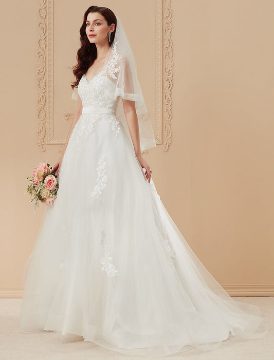 Regular price $189.99 USDRegular priceUnit price / per$269.99 USDSale price $189.99 USDSaleWedding Dresses Ball Gown V Neck Regular Straps Floor Length Tulle Over Lace Bridal Gowns