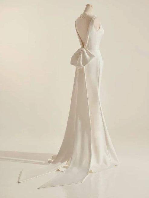 Regular price $358.90 USDRegular priceUnit price / per$438.90 USDSale price $358.90 USDSaleSimple Sleeveless Mermaid Wedding Dress With Sexy Bow Floor Length White