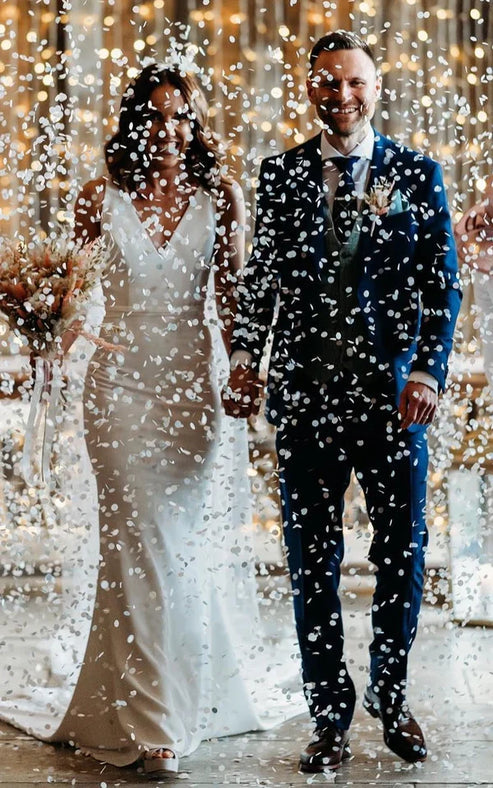 Regular price $169.99 USDRegular priceUnit price / per$249.99 USDSale price $169.99 USDSaleSimple Casual Trumpet V-neck Sleeveless Wedding Dress for Women Floor-length with V Back Long Train Elegant