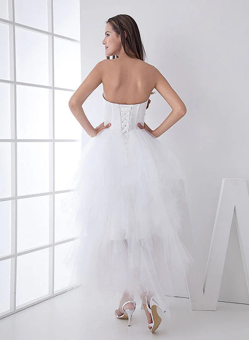 Regular price $145.99 USDRegular priceUnit price / per$225.99 USDSale price $145.99 USDSaleWhite Classic Strapless Satin High Low Wedding Dress Off Shoulder