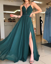 A-Line Open Back Chiffon Long Dress Bridesmaid Dresses With Slit Wedding Guest Dress Sexy Evening Dress