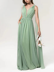 A-Line/Princess V-Neck Floor-Length Chiffon Bridesmaid Dresses Wedding Guest Dresses