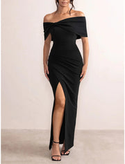 Women's Black Dress Prom Dress Party Dress Long Dress Maxi Dress Black Red Short Sleeve Plain Backless Summer Off Shoulder Elegant Wedding Guest Evening Party Vacation