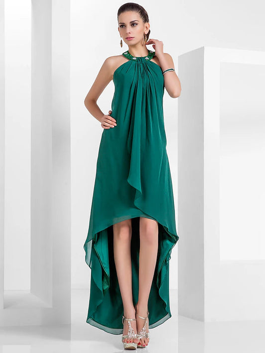 Regular price $139.99 USDRegular priceUnit price / per$219.99 USDSale price $139.99 USDSaleA-Line Elegant Dress Wedding Guest Asymmetrical Sleeveless Halter Chiffon Backless with Pleats