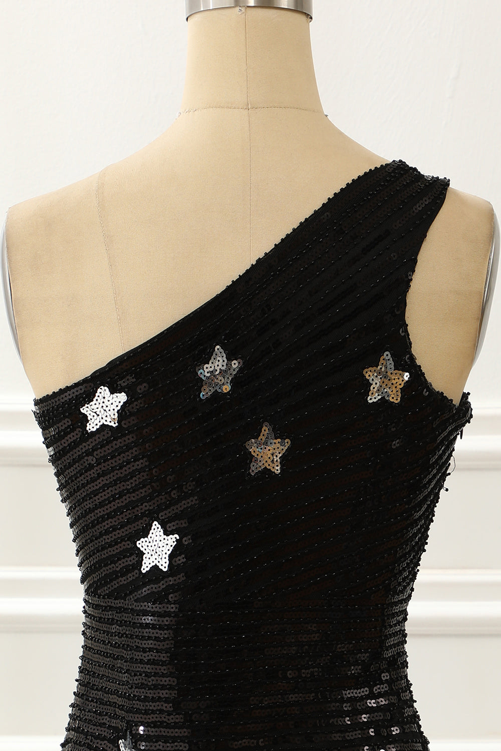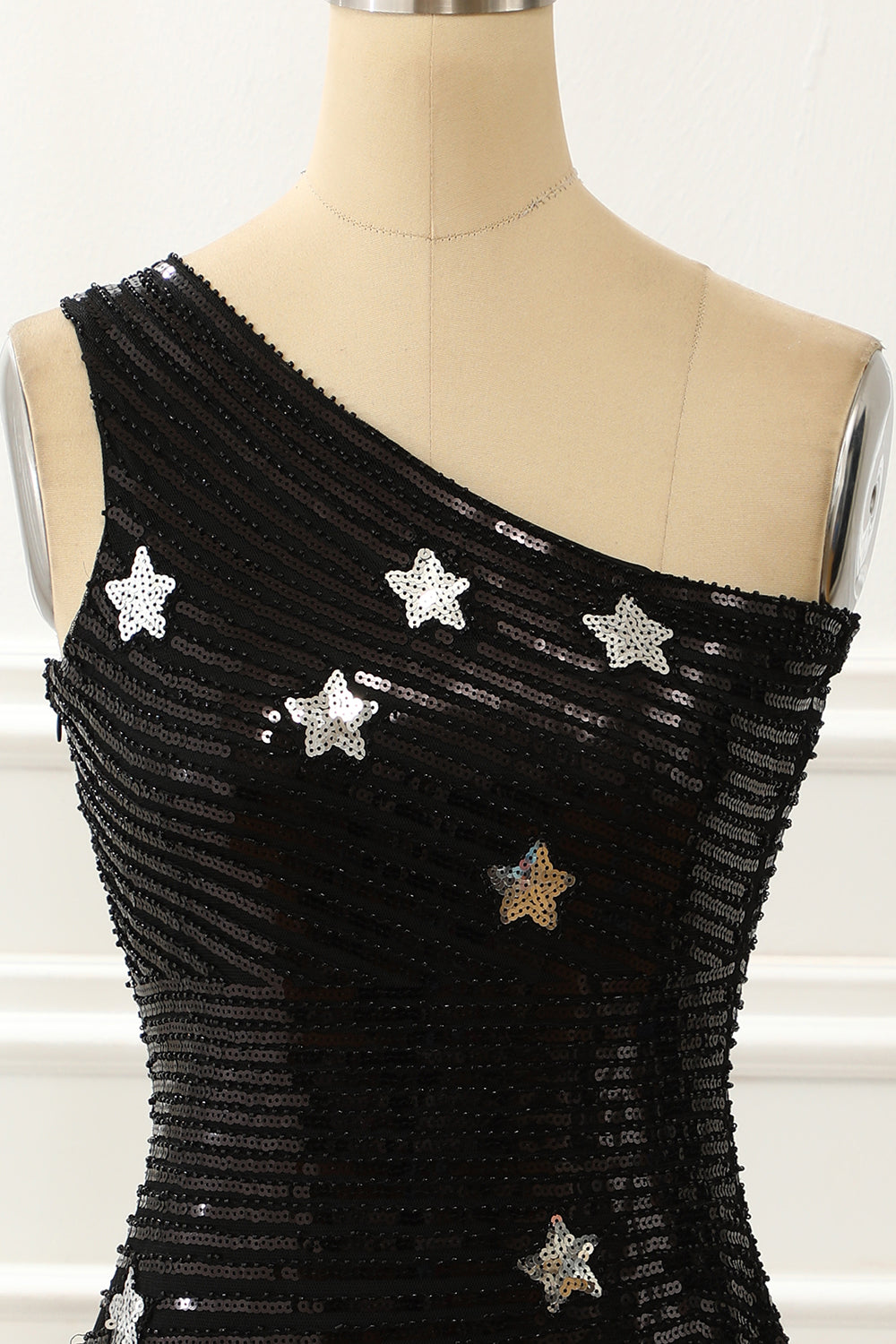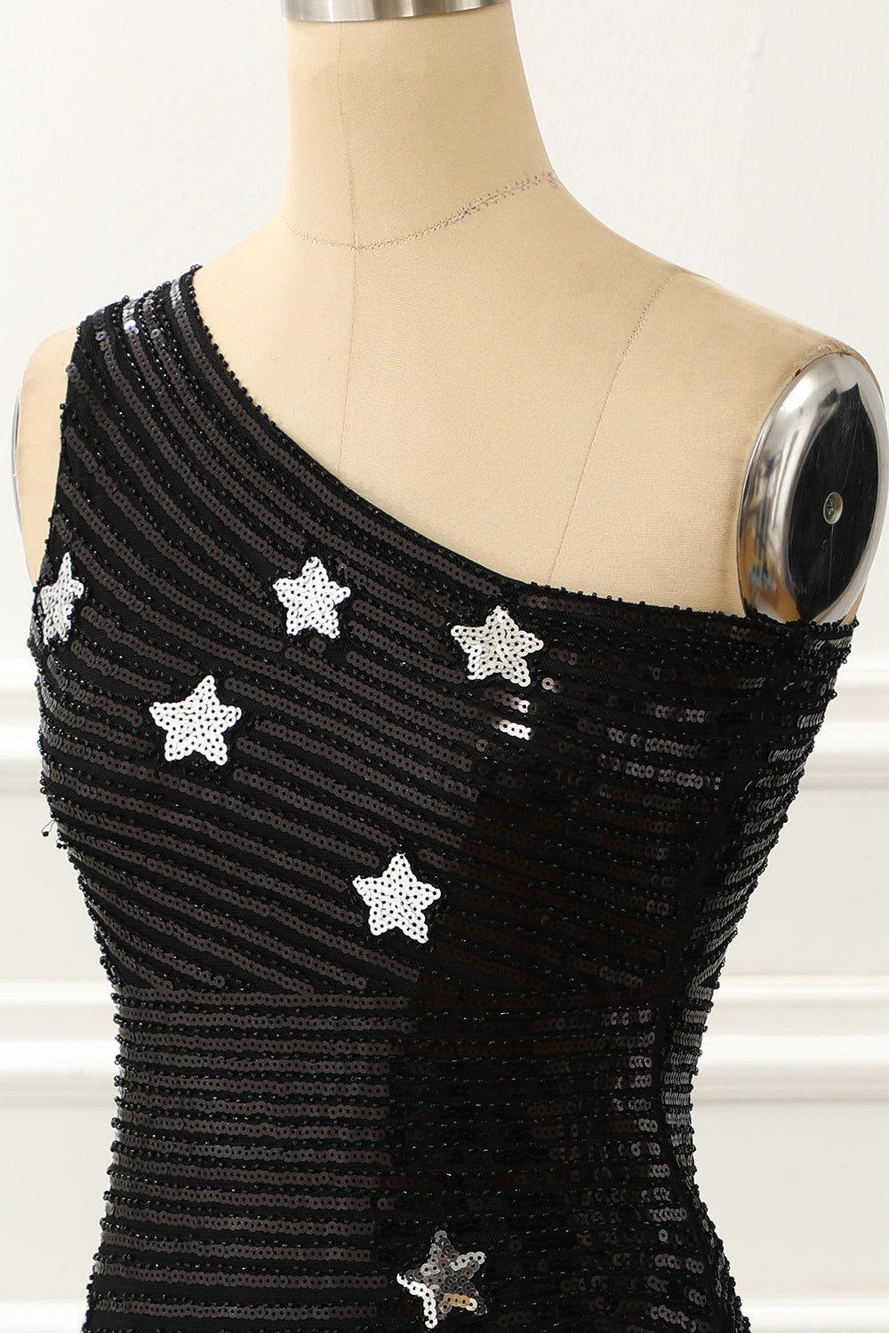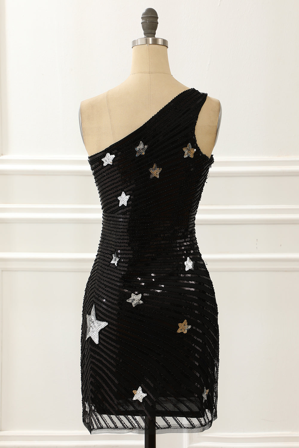 Black One Shoulder Sequin Cocktail Dress With Stars Short Sexy