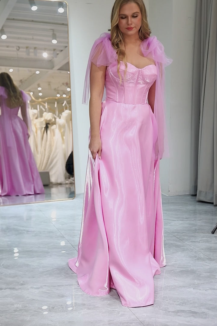 Glitter Pink A Line Spaghetti Straps Backless Long Corset Prom Dress Sexy