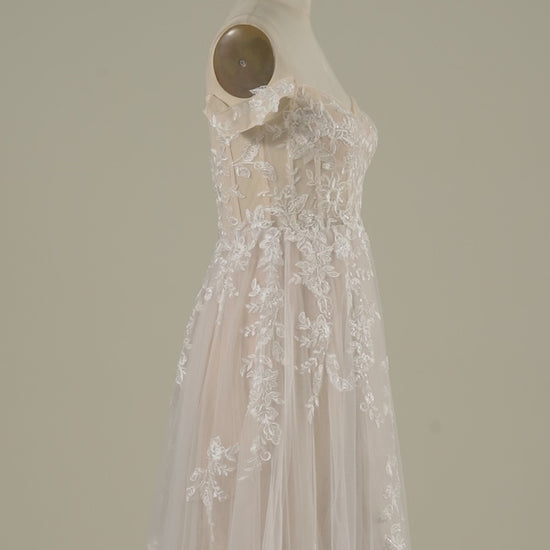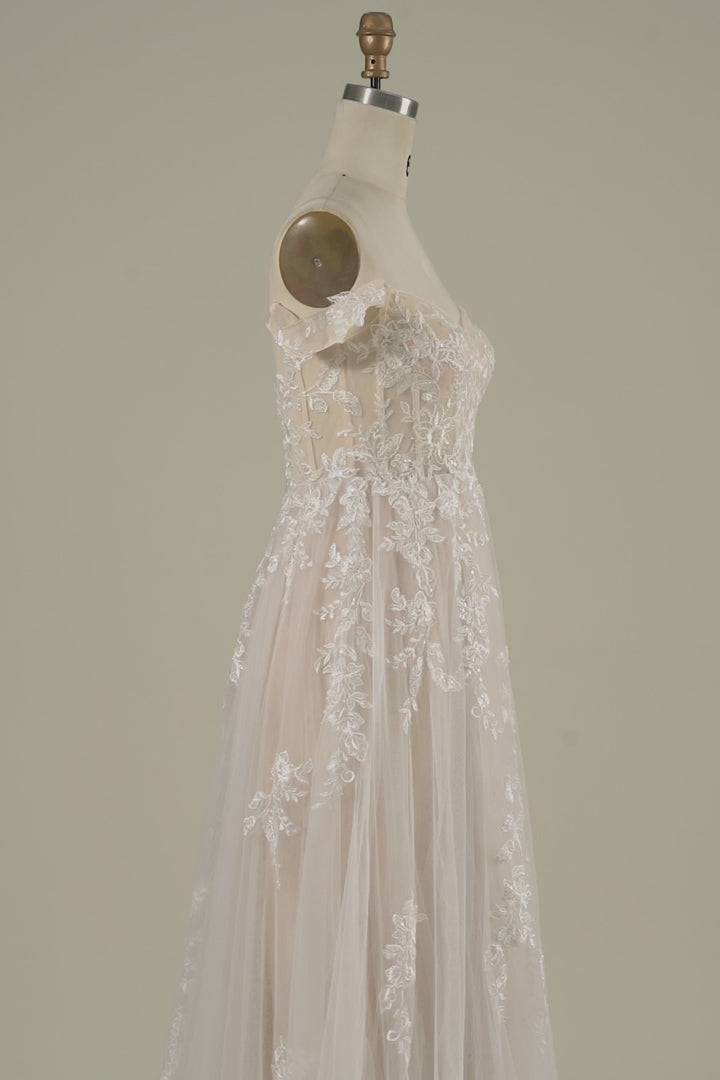 Ivory A Line Detachable Off the Shoulder Corset Tulle Wedding Dress Long
