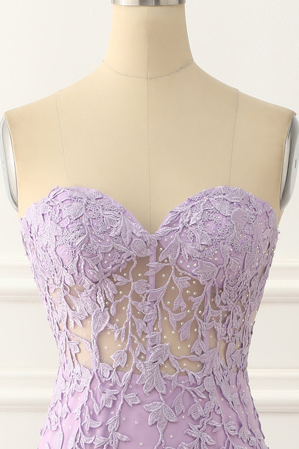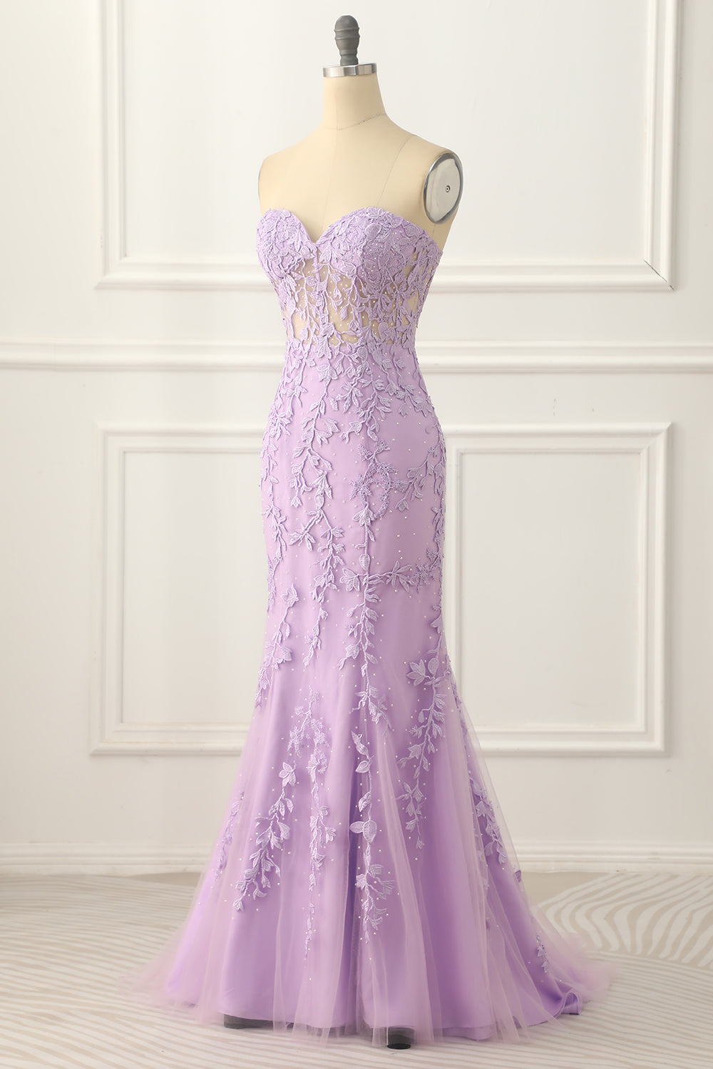 Lavender Strapless Mermaid Prom Dress With Appliques Off Shoulder Long