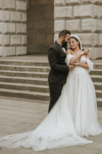 Wedding Dress Off The Shoulder A Line Lace Tulle Bridal Dress Floor Length Elegant